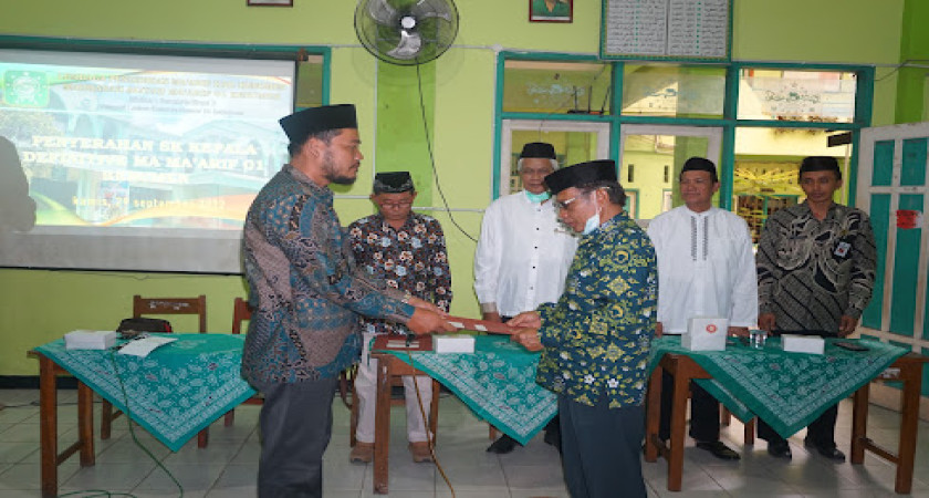 Kebumen - Rabu (28/9) MA PK Ma'arif 01 Kebumen gelar pisah sambut kepala madrasah lama dan kepala madrasah baru bertempat di aula. Acara lepas sambut dihadiri oleh Ketua PCLP Ma'arif NU Kab kebumen Drs H Mahar Moegono, HN, MM, Guru karyawan, komite, pengawas satuan pendidikan MA kankemenag Kab. Kebumen Ibu Hj. Sriwi Rahayu, M.Pd, pengurus PCNU kab. Kebumen dan pengurus PCLP Ma'arif NU kab Kebumen.