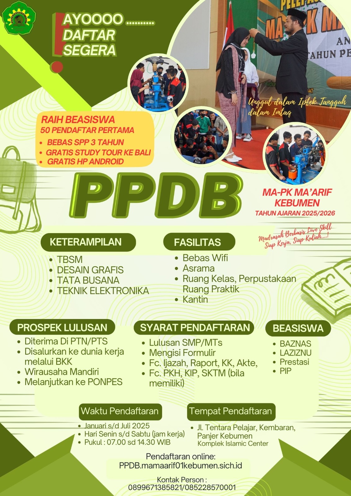 PPDB MA MA'ARIF 01 KEBUMEN T.P. 2024/2025
